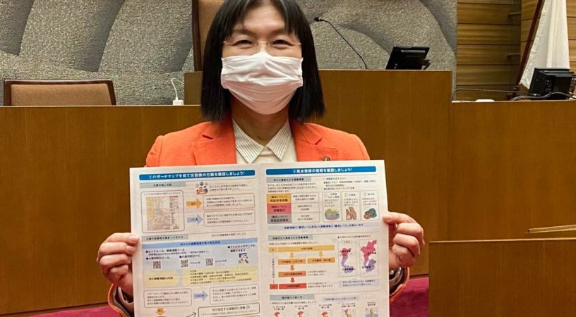 また令和3年2月議会において、避難所での感染対策を一層進めると共に、避難行動の流れを図示したフローチャートをいつでも見られるよう保存版として全戸配布することを再度提案しました。