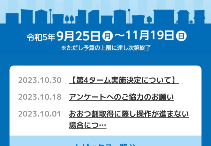 おおつ割最後の募集開始決定。11月6日から第4タームスタートです。 2023.11.1 おおつ割の第4タームの実施が決まりました。11月6日から募集がスタートします。おおつ割は第4タームで終了します。第4ターム実施決定のお知らせ画面続きをみる 雨水溝の拡幅ができました!前の記事 議会図書室の価値次の記事